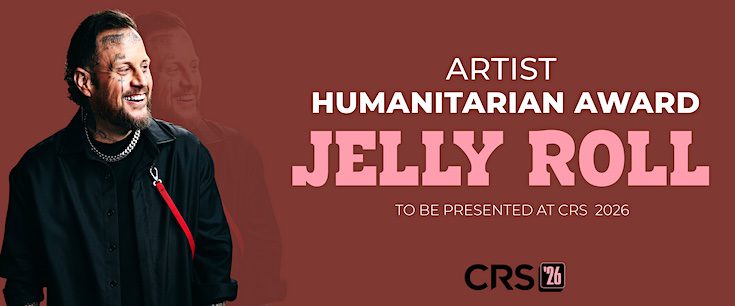 • Country Radio Broadcasters (CRB) is proud to announce Jelly Roll as the recipient of the 2026 Artist Humanitarian Award. The award will recognize the triple Grammy-winning artist, whose deeply personal and far-reaching commitment to addiction recovery, mental health, and community extends far beyond his music. This prestigious honor will be presented during Country Radio Seminar (CRS) 2026, taking place March 18-20 in Nashville.