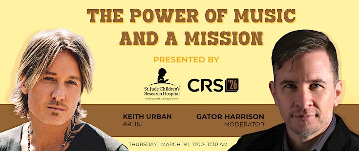 Urban’s appearance is part of the session titled “The Power Of Music And A Mission,” presented by St. Jude and CRS, scheduled for Thursday, March 19, at 11am. Moderated by WSIX/Nashville‘s Gator Harrison, the session will give attendees an intimate look at the power of Country radio’s longstanding relationship with St. Jude, one of the Country format’s most meaningful philanthropic partnerships.
