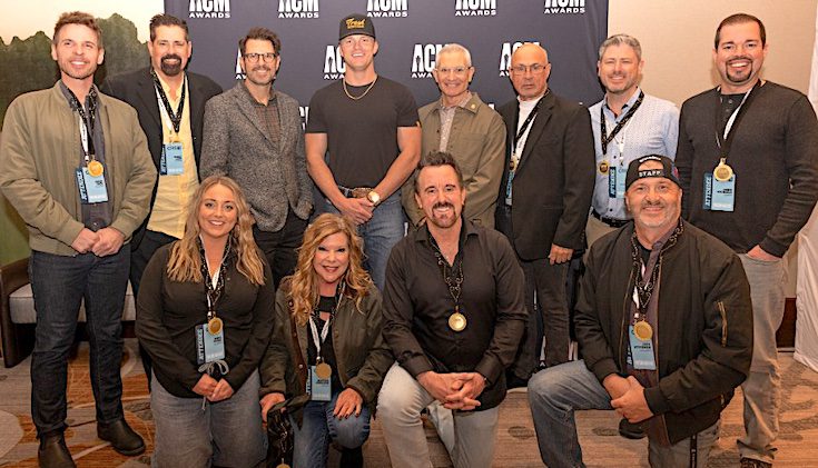 The On-Air Personality inductees are Chris Carr, Michael J, and Rick Jackson. The Radio inductees are Marci Braun, Phil Hunt, Bruce Logan, and John Marks. Many of the honorees are pictured below, along with CRB Executive Director RJ Curtis (back row, 4th from right)